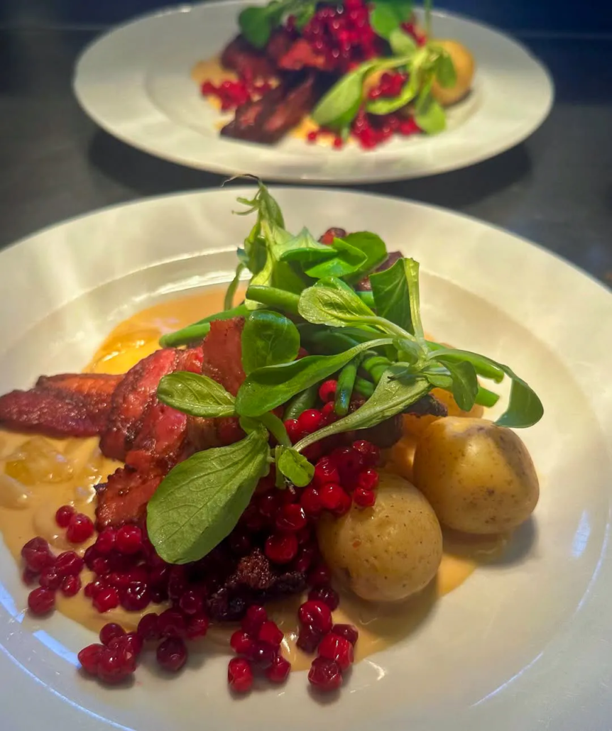 Nattbakad Karré med äpple, skysås och rostad potatis